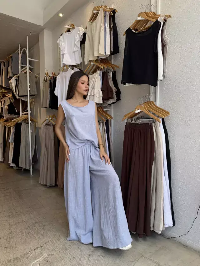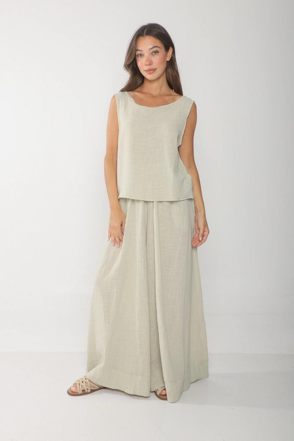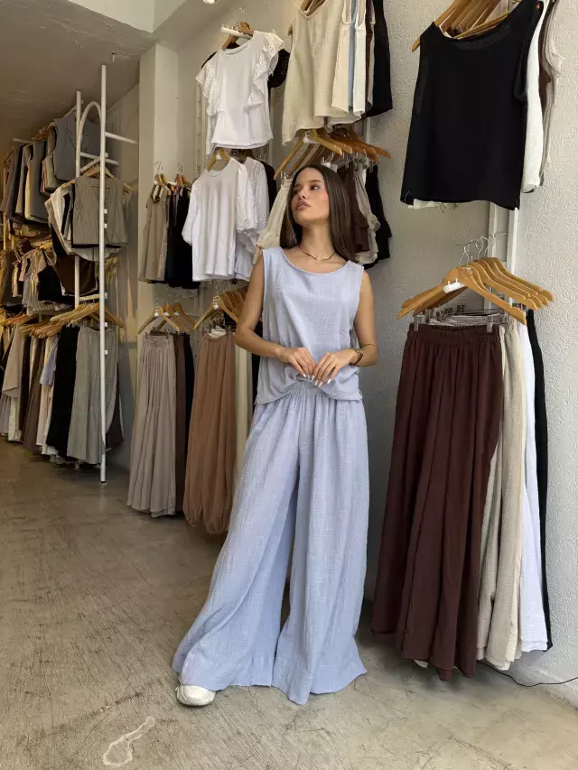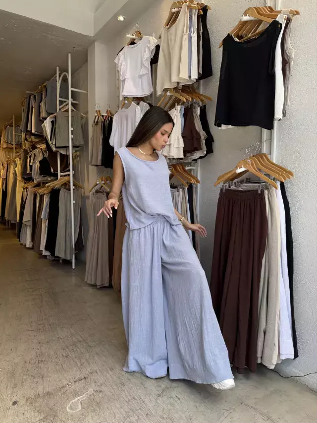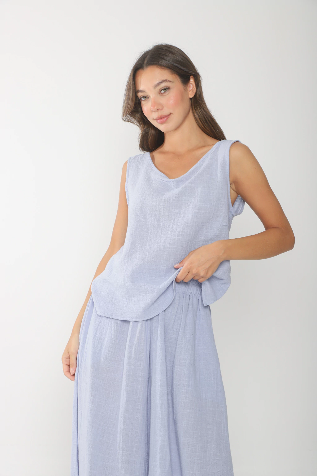 Blusa confeccionada en bambula, modelo musculosa y tajo laterales