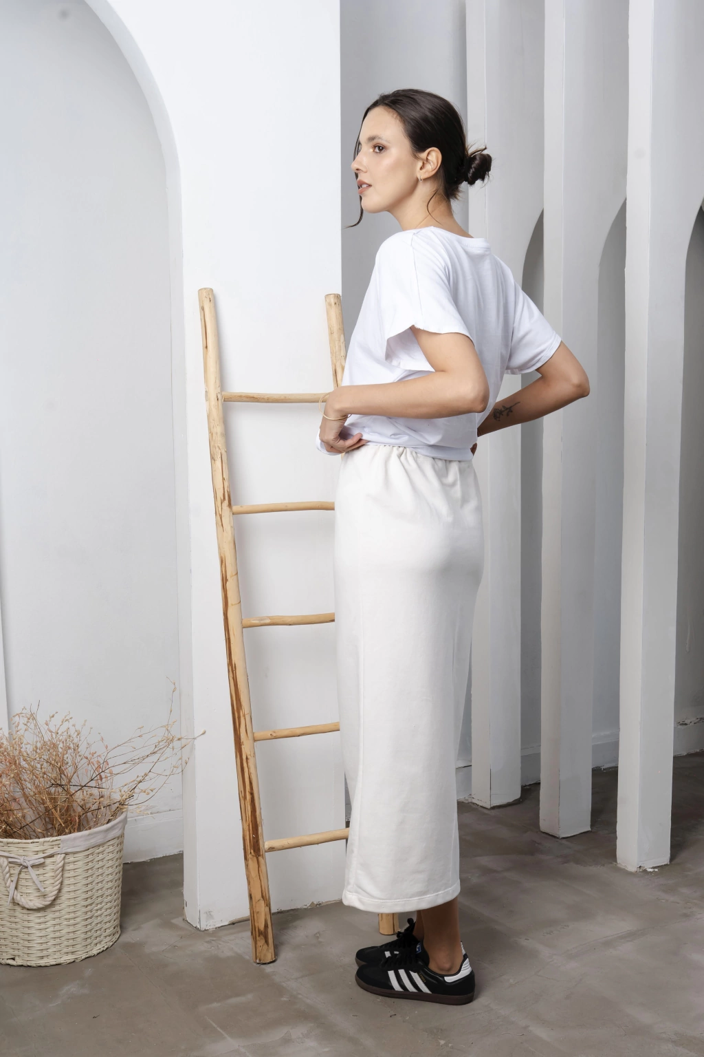 Falda confeccionada en Rustico. Modelo tubo c lazo finito para regular y ajustar en cintura.