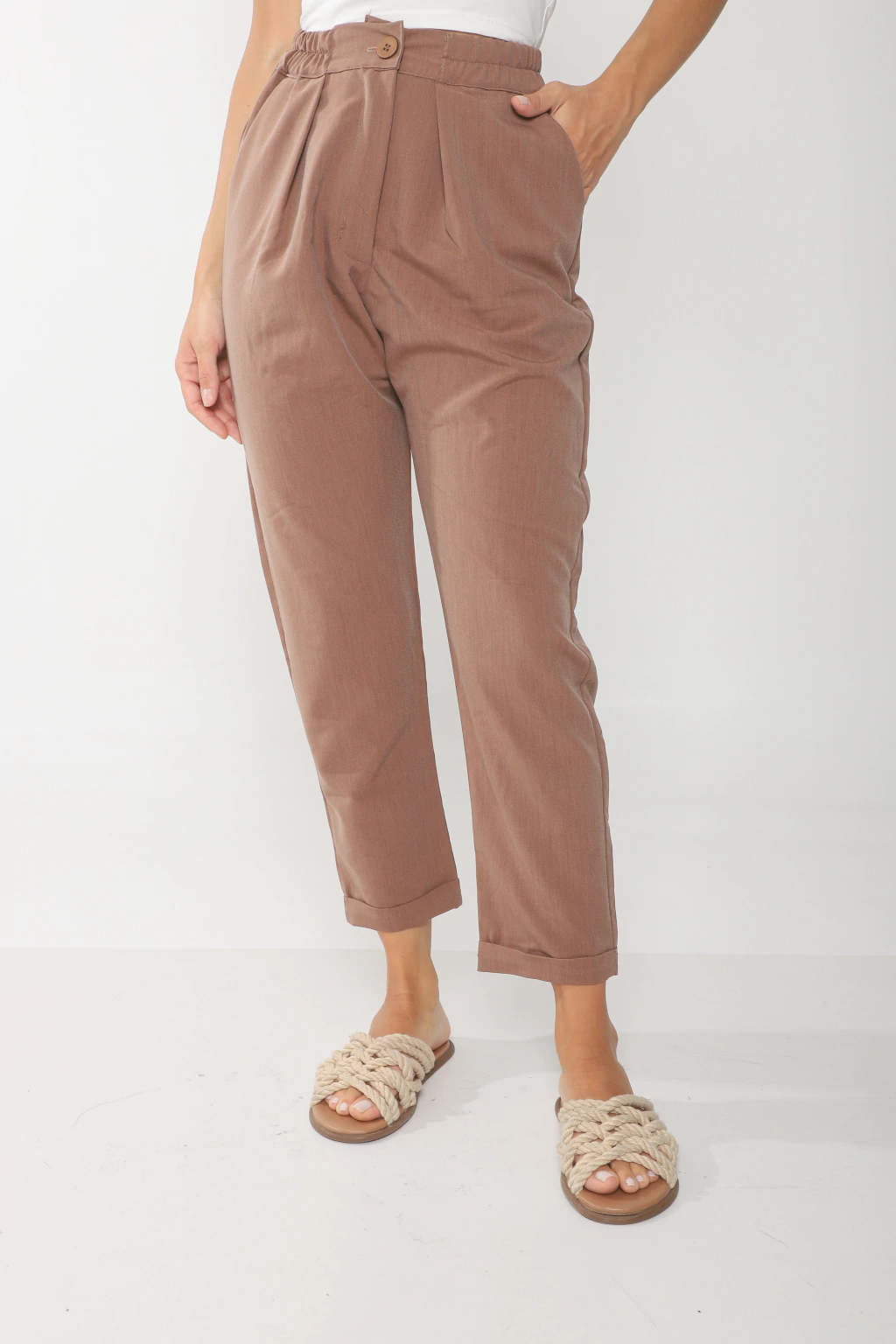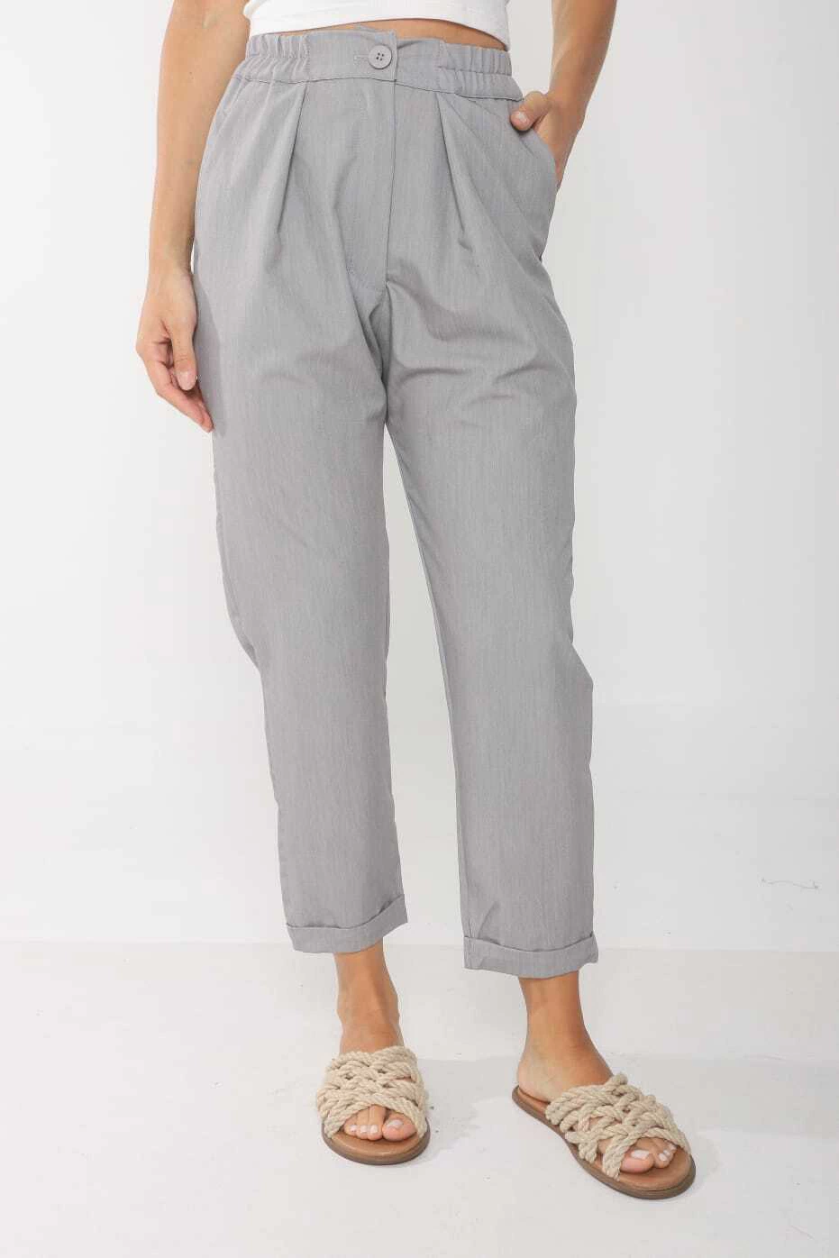 Pantalon confeccionado en tela sastrera, modelo con bolsillo a los costados, elastico en cintura y dobladillo en el botapie