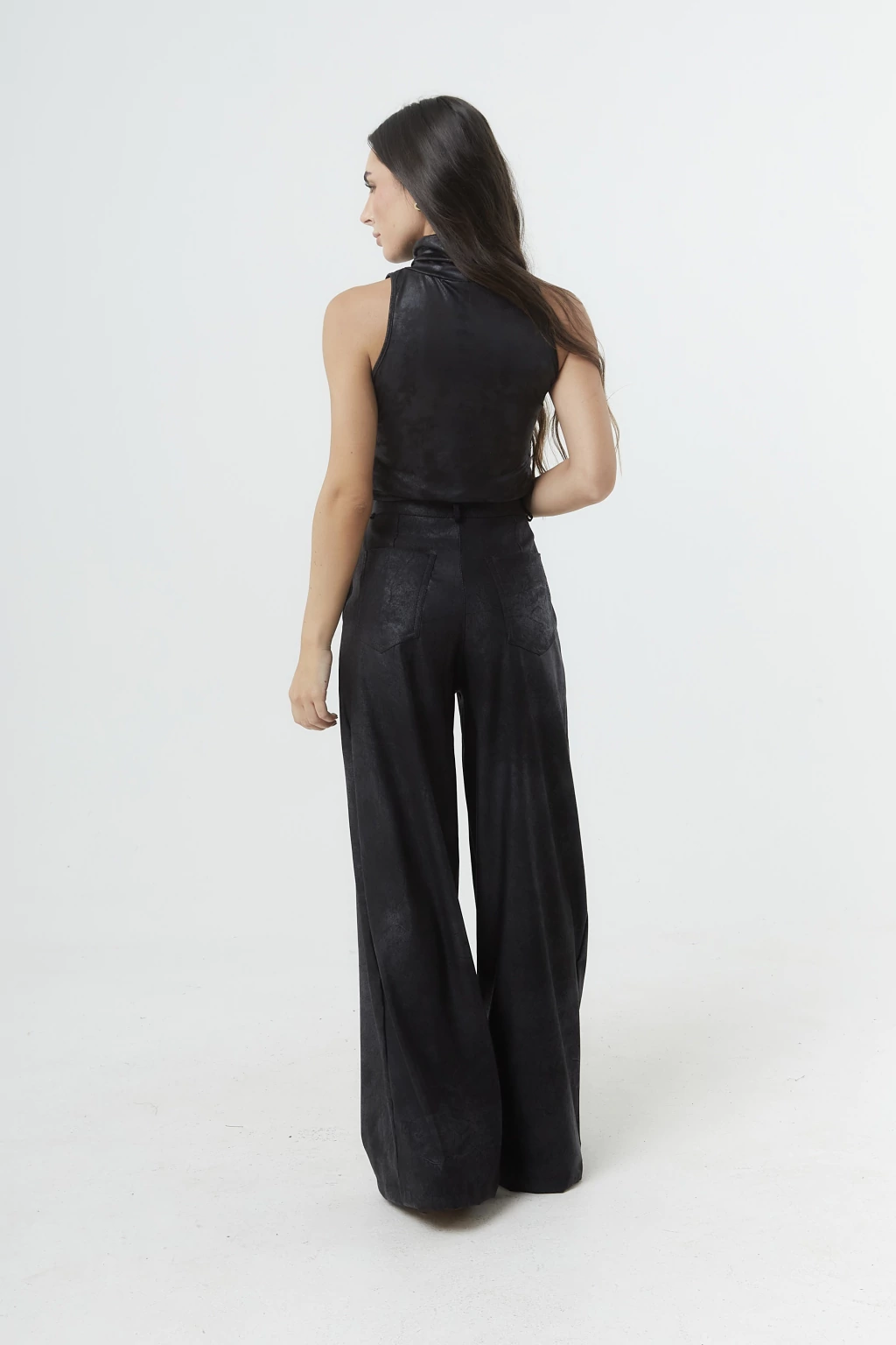 Pantalon confeccionado en bengalina vintage, modelo tiro alto y super amplio.