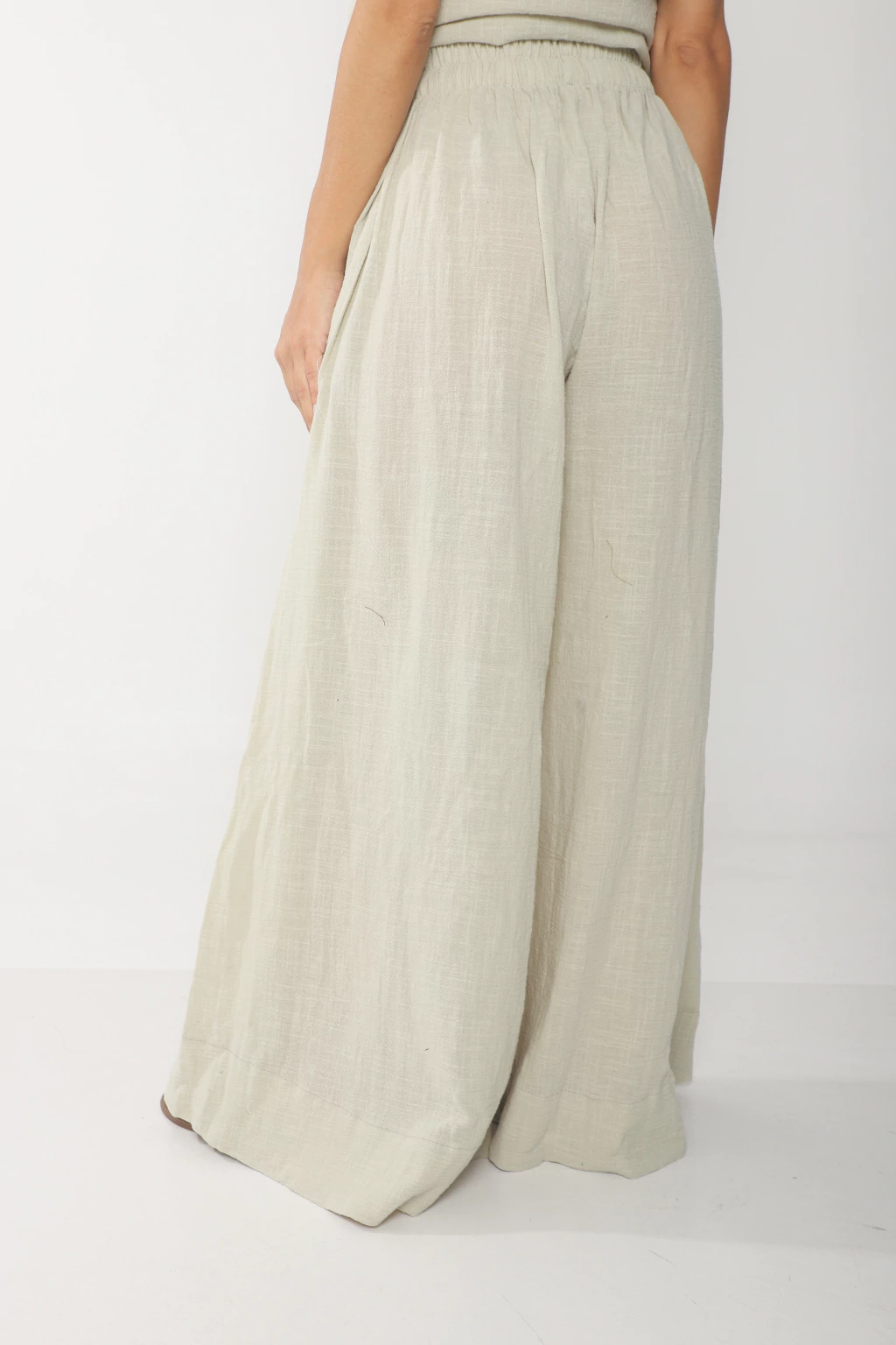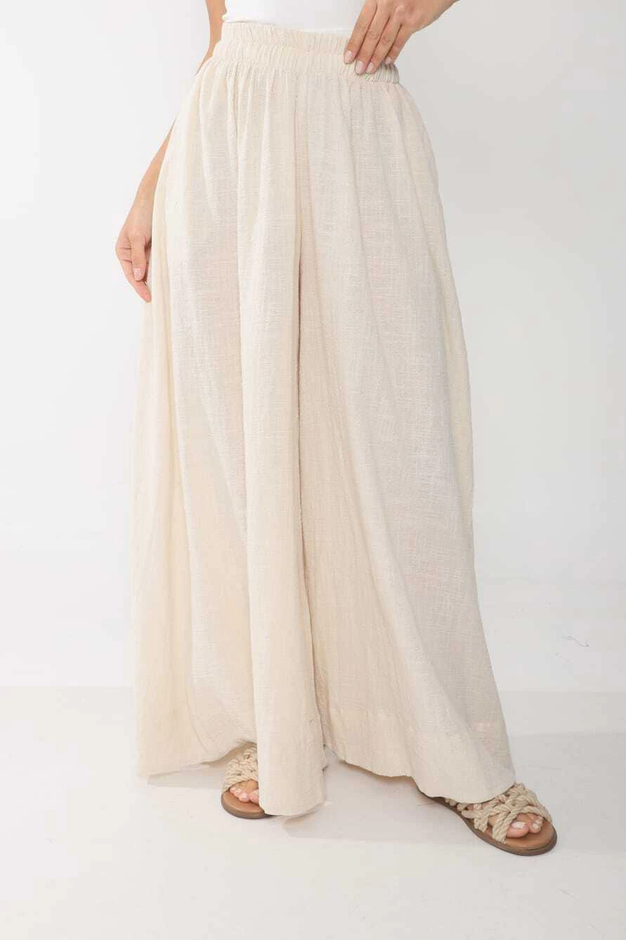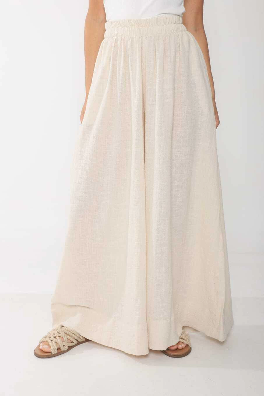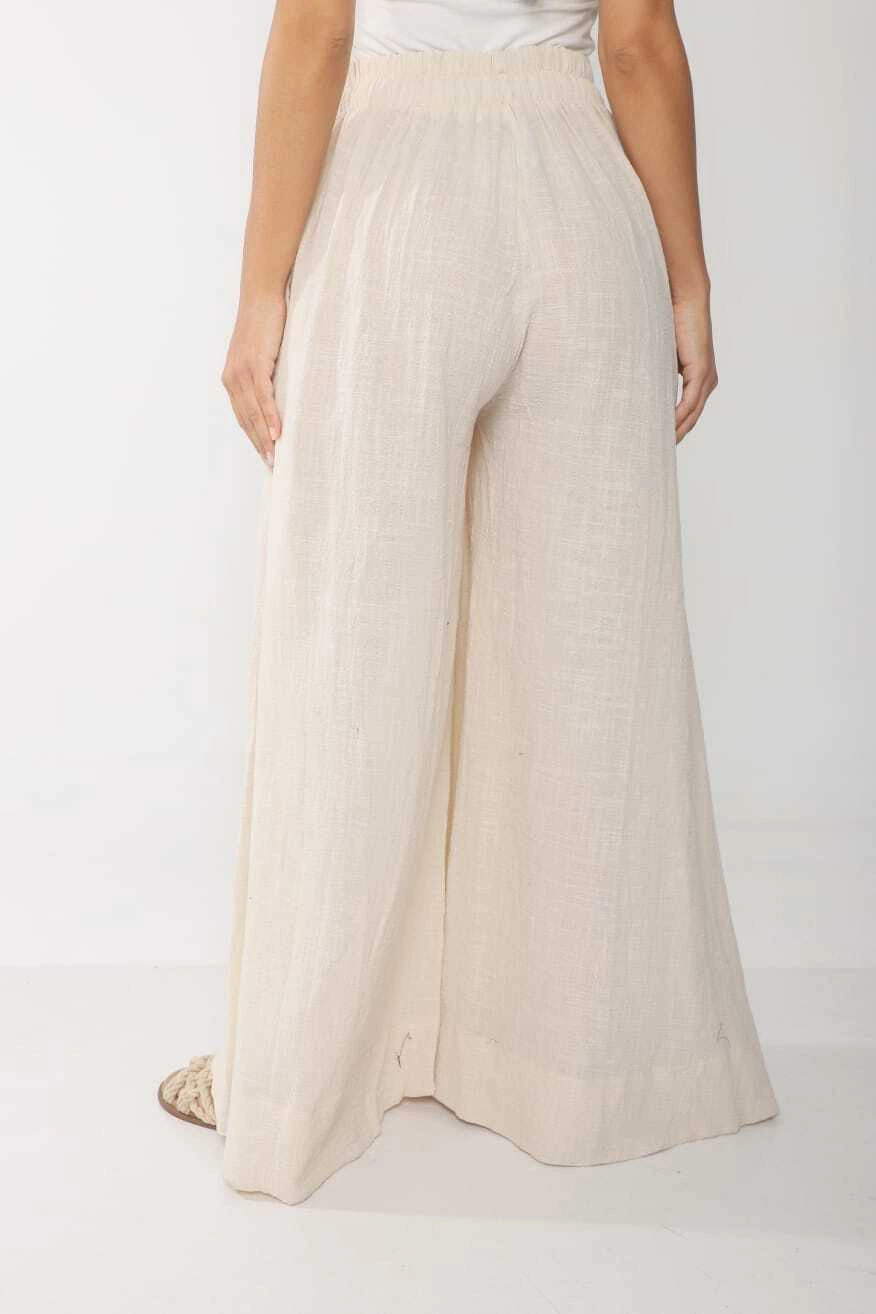 Palazo confeccionado en bambula, modelo super amplio, con elastico en cintura y tiras en la parte interior para regular