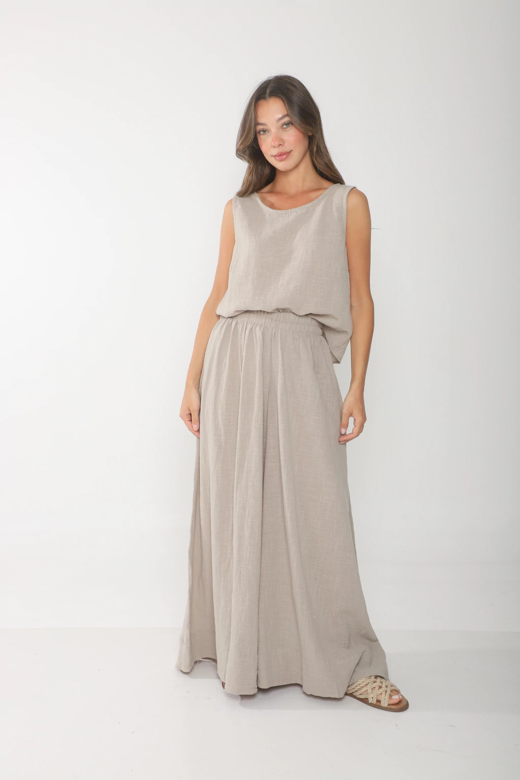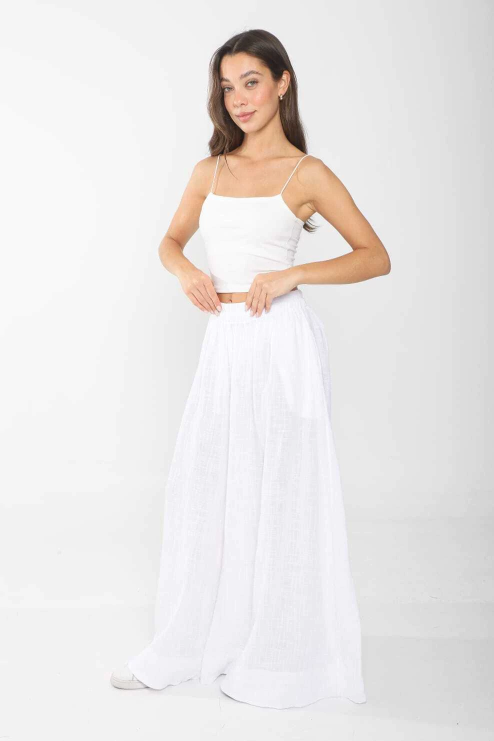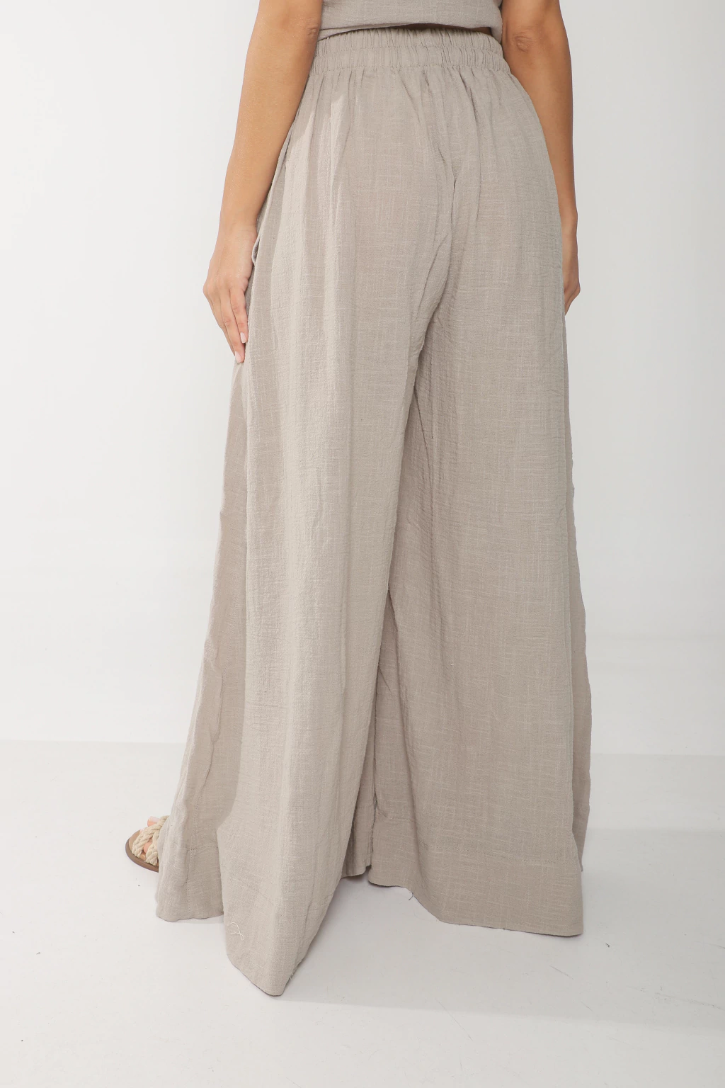 Palazo confeccionado en bambula, modelo super amplio, con elastico en cintura y tiras en la parte interior para regular