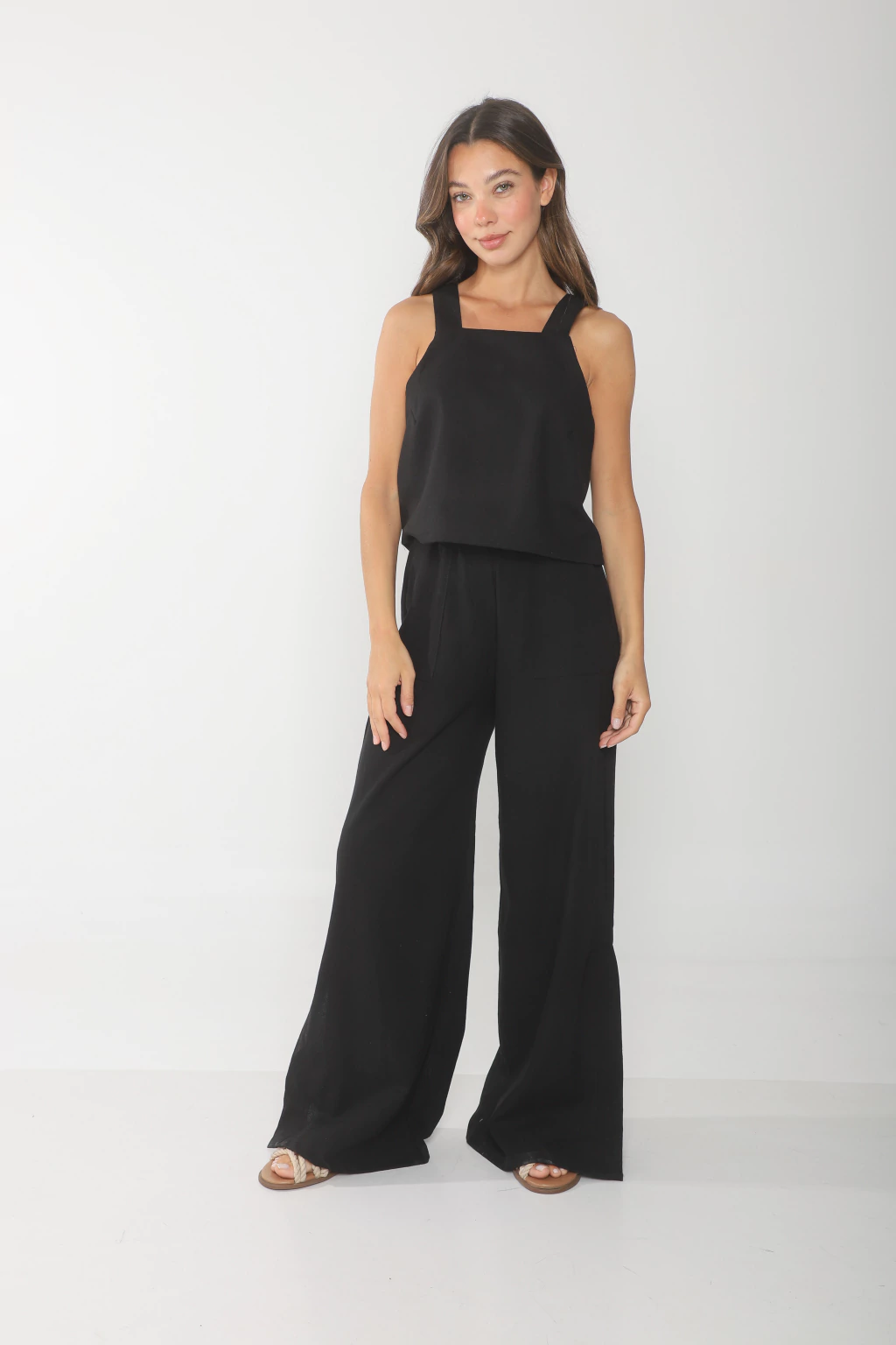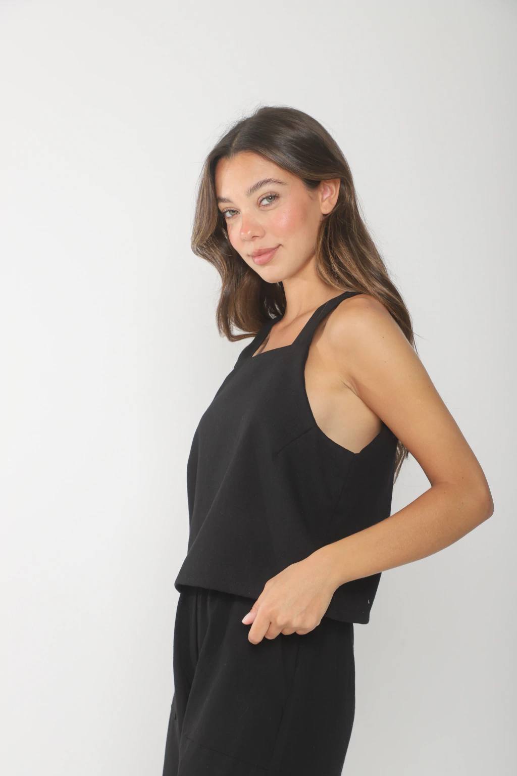 Top confeccionado en lino, modelo con pinzas a los costados, escote recto con bretel ancho y forreria interna
